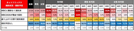 本研究所ではWBC2026終了後にも、ネットフリックスの契約率およびその後の継続意向に関する追跡調査を実施し、実態の解明を目指します。