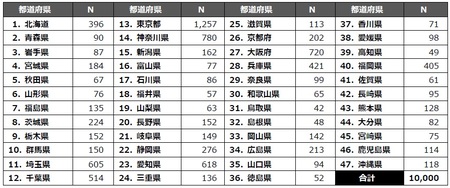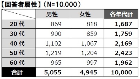 調査対象:日本在住の20歳~69歳の男女10,000人(総務省統計局2025年4月14日公開の 「2024年10月1日現在人口推計」の都道府県・性別・年代構成比に準拠)