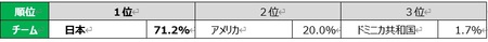 8割超えは前回大会で決勝を戦ったPOOL B(ヒューストンプール)のアメリカと、POOL C(東京プール)の日本でした。POOL A(サンファンプール)は夏季オリンピックで3度の金メダルを誇る伝統国キューバ、POOL D(マイアミプール)はWBC2013の優勝国でもあるドミニカ共和国がそれぞれ突破予想の1位でした。