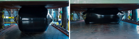 本製品は、船舶が岸壁などに接岸・係留する際に生じる衝撃を吸収・緩和し、船舶および港湾設備を保護するために用いられる防舷材です。防舷材には、岸壁に固定して使用する「ゴム式」と、水に浮かべて使用する「浮体式」があり、浮体式には「空気式」と「フォーム式」の2種類があります。