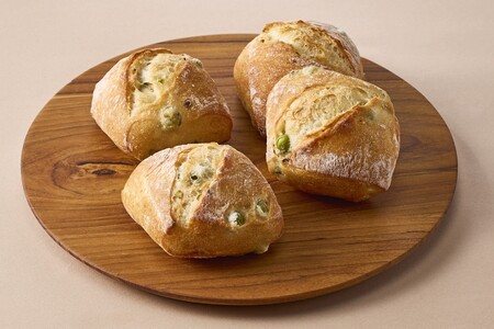 フランスパン生地にグリーンピースを混ぜ込んだプチパンです。
