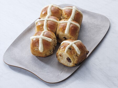 イギリスのイースターには欠かせない一品。ガルガンチュワの人気商品である「レーズンブレッド」の生地に、シナモンとオレンジピールを加えたボリューム満点のちぎりパンです。