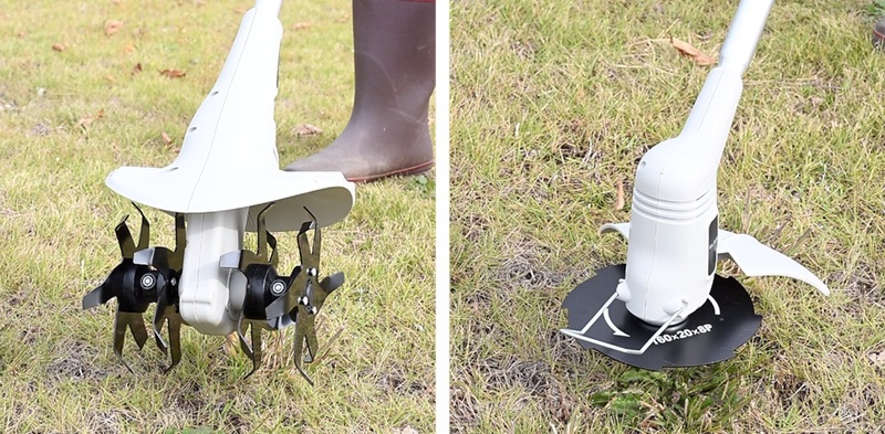 用途に応じて先端アタッチメントを付け替えることで、耕うん、草刈りなど、庭のさまざまな作業に対応。複数の機器を使い分ける必要がなく、省スペースで効率的な庭仕事が可能になります。
