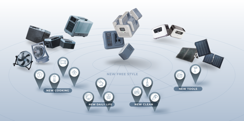 「ELEIN」は、共通のリチウムイオンバッテリーを利用して、さまざまな家電を活用できる商品シリーズです。電源がない場所でも家電を自由に使えるだけでなく、同シリーズのソーラーパネルを活用することで、電気代高騰への対策やサステナビリティ意識の向上、さらに災害時の継続的な電源利用など、さまざまなニーズに応えます。