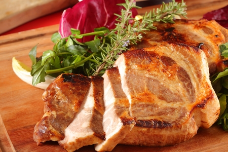 ディナーでは、月替わりで肉料理を提供いたします。3月は「千葉県銘柄豚厚切りトンテキ」を、特製だれで香ばしく焼き上げ、食べ応えのある味わいに仕上げます。4月は「鴨のロースト オレンジソースといちごソース」をご用意。爽やかな柑橘の風味と果実の酸味が肉の旨みを引き立てます。