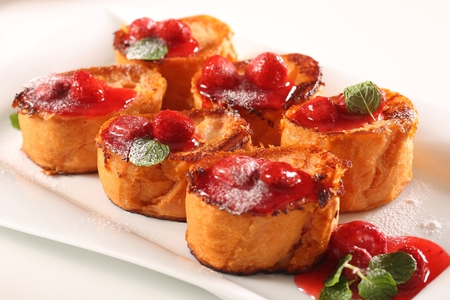 外は香ばしく、中はふんわりと焼き上げた一品。バルサミコビネガーをアクセントに加えたいちごソースが彩る、甘酸っぱい味わいです。