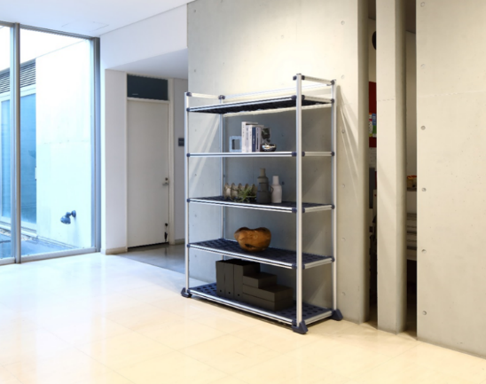 備品や書類、商品などの陳列、収納に使える商品で、災害時には、プライベート空間の確保ができる簡易ブースに変形できます。アルミ製部材を組み替えてブースのフレームを作り、付属のカバーを被せれば完成です。ラックから取り外した棚板は足元のスノコとして使用できます。非常時の更衣室や授乳室などに活用できるほか、撥水性に優れた生地と天井部に施した独自の雨流し構造により、屋外の手洗いスペース、簡易トイレスペースなどにも活用いただけます。