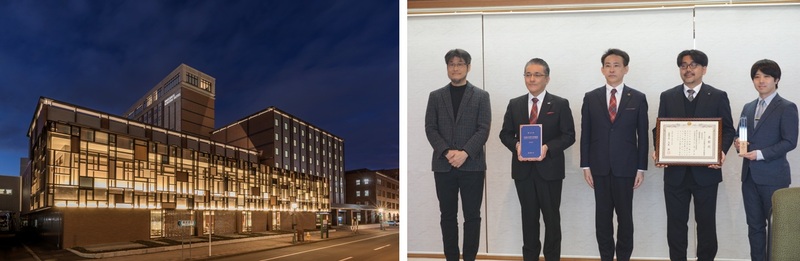 このたびは、函館市都市景観賞という大変名誉ある賞を市民の方のご推薦によりいただきましたことを大変嬉しく思います。このたびの受賞に際し、ホテルスタッフ一同感謝を申し上げます。当ホテルは、JR函館駅と観光名所を結ぶ多くの方が行き交う場所に位置しております。今回のリニューアルでは、景観との調和を図りながら、アイコニックな外観の創出、夜間ライトアップによる視認性の向上など、昼夜を問わず安心してご利用いただける環境づくりに努めております。これからも函館の景観を守り、市民や観光客の皆さまの安心・安全を支える存在であり続けたいと存じます。