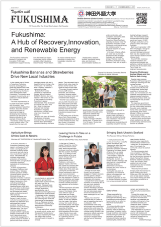 本紙は、国際系の大学である「神田外語大学の学生だからこそできること」をテーマに、行政や企業の取り組みだけではなく、福島で活動する人々の声や思いを大切に、福島の「今」を多面的に世界に伝えることを目的に制作されました。