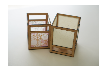 モデリングソフト「Tinkercad(ティンカーキャド)」でモデリングを学びながら、オリジナルの行燈(外枠部分)のデータを作成する講座。作成したデータはレーザー加工機で加工し組み立てた後、当日お持ち帰りいただけます。