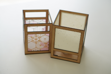 モデリングソフト「Tinkercad(ティンカーキャド)」でモデリングを学びながら、オリジナルの行燈(外枠部分)のデータを作成する講座。作成したデータはレーザー加工機で加工し組み立てた後、当日お持ち帰りいただけます。