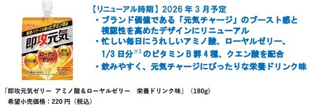 株式会社 明治(代表取締役社長:八尾 文二郎)は、「即攻元気ブランドより、 元気をチャージする「 即攻元気ゼリー アミノ酸&ローヤルゼリー 糖類0 コーラ風味 」を2026年3月9日よりコンビニエンスストアにて先行発売し、3月23日より全経路にて発売します。