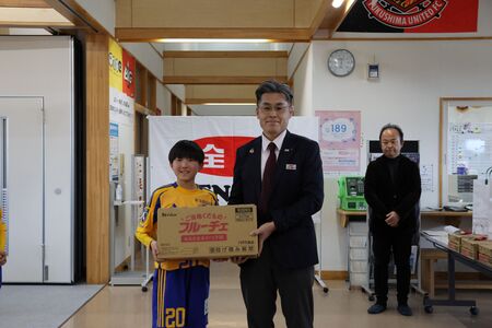 閉会式では、全農福島県本部 管理部長の佐藤利明が、入賞チームと全出場選手へ東北地区の6県(青森県・岩手県・宮城県・秋田県・山形県・福島県)のお米やジュースなどの国産農畜産物を贈呈し激励しました。全農は「アスリートの活躍を『ニッポンの食』で支える」をスローガンに、海外で活躍するスポーツ選手から将来を担う子どもたちを「ニッポンの食」で応援します。