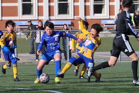 ベガルタ仙台ジュニア(黄ユニフォーム)とブラウブリッツ秋田(青ユニフォーム)