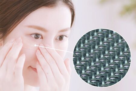 コスメディ製薬が開発した「溶解型マイクロニードル」は、皮膚中の成分ヒアルロン酸を基材とし、針が皮膚内の水分で溶けるマイクロニードル。この「溶解型マイクロニードル」を製品として事業化するため、承認プロセスに時間を要する医薬品や医療機器より先に、短期間で製品化できる美容領域に展開。工業的製法を確立し、2008年に世界初※1「マイクロニードル化粧品」として社会実装しました。