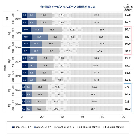 Q. 【平日に/週末に】有料配信サービスでスポーツを視聴することについてあなたのご意向をお伺いします。