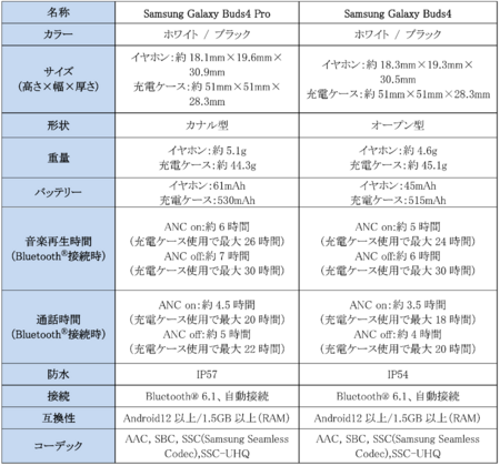 「Samsung Galaxy Buds4 Pro」「Samsung Galaxy Buds4」 本日発売開始