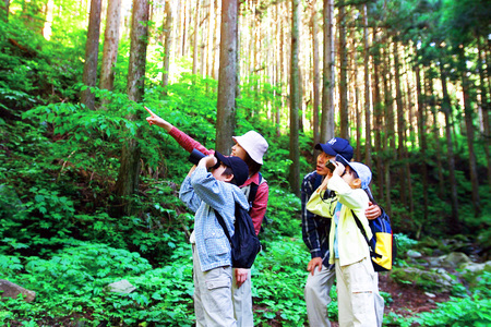 野鳥紹介シートや双眼鏡を使いながら森の野鳥観察を楽しめます。