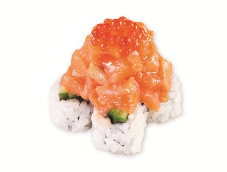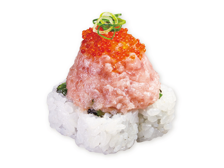 他にも、見た目にインパクトのある2種の“マウンテン商品”が新発売。きゅうりの裏巻きの上に、ねぎまぐろを高さが出るように盛りつけた「まぐろマウンテン」や、赤ユッケダレを絡めたサーモンを高さが出るよう盛りつけた「サーモンマウンテン」は、それぞれにとびこやイクラをトッピングすることで、食べごたえだけでなく、豪華さと彩りも楽しめる一皿に仕上げました。