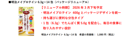株式会社 明治(代表取締役社長:八尾 文二郎)は、いつもの食事に混ぜるだけで手軽にたんぱく質を補給できる粉末タイプの栄養補助食品「明治メイプロテイン」シリーズから、大容量タイプの「明治メイプロテイン 400g」を3月23日より全国で発売します。