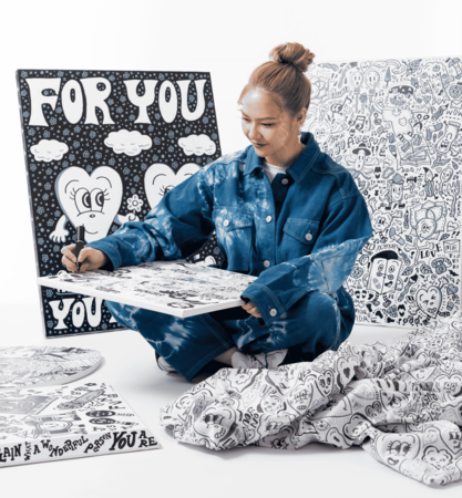 日本をはじめ海外のアパレルブランドや企業とのコラボレーションなど、さまざまなアーティストへ作品提供し、国内外でのArt Showにも参加するなど幅広いシーンで活動中。