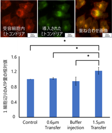 この結果は、単なる細胞内液の移送では細胞機能の改善は起こらず、機能性オルガネラであるミトコンドリアそのものを移送できた場合にのみ、細胞機能の向上が実現されることを示しています。