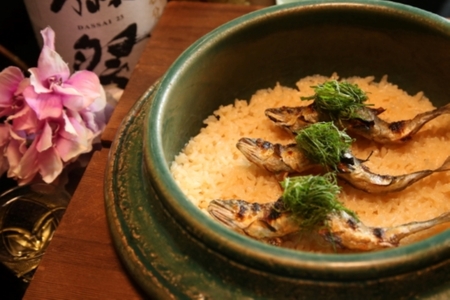 当館は、かつて御所へ献上される鮎を休ませる場所であったことから「鮎の宿」と呼ばれてまいりました。今に繋がる歴史の中で、私たちが何より大切にしてきたのが鮎料理です。6月に解禁となる季節の鮎を、お造りや塩焼き、鮎ご飯など代々受け継いできた伝統の献立でお出しいたします。400年変わらぬ茅葺きの屋根の下、私たちが心を込めて仕立てる鮎の滋味をお楽しみください。