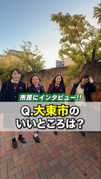 公募で選ばれた市民の皆さんに出演いただき、大東市の好きなところや想いを、自然体で語り、大東市に関わる全ての皆様に、「大東市っていいまちだな」と感じていただける動画です。