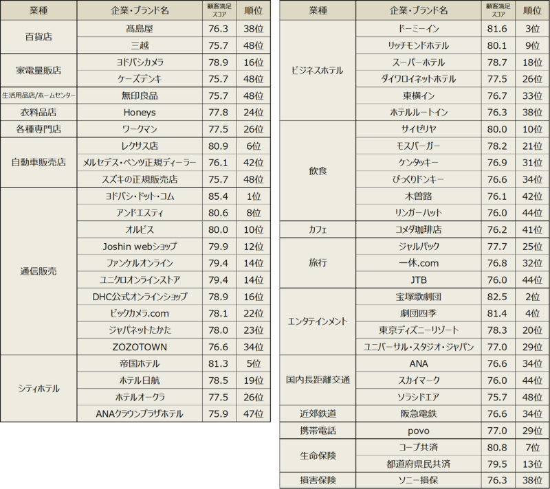 ・また、特別調査(上記表参照)業種の企業・ブランドは、年間総合順位に含まれません。