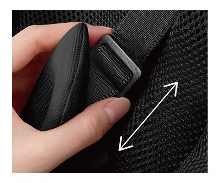 引っ張ると片手で高さを調節できるベルトを新たに搭載しました。