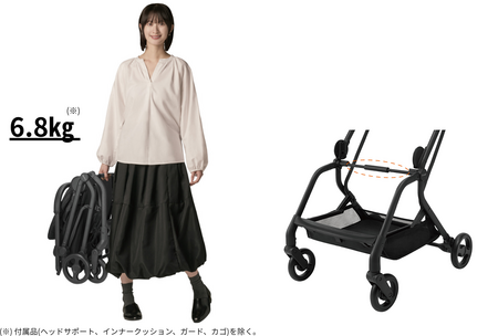 (※1) 2024年~2026年2月までに国内で販売されたオートクローズ搭載シート切替タイプのベビーカー商品群(小売り専売品を除く)との比較/付属品を除いた本体重量(2026年2月時点 コンビ調べ)。