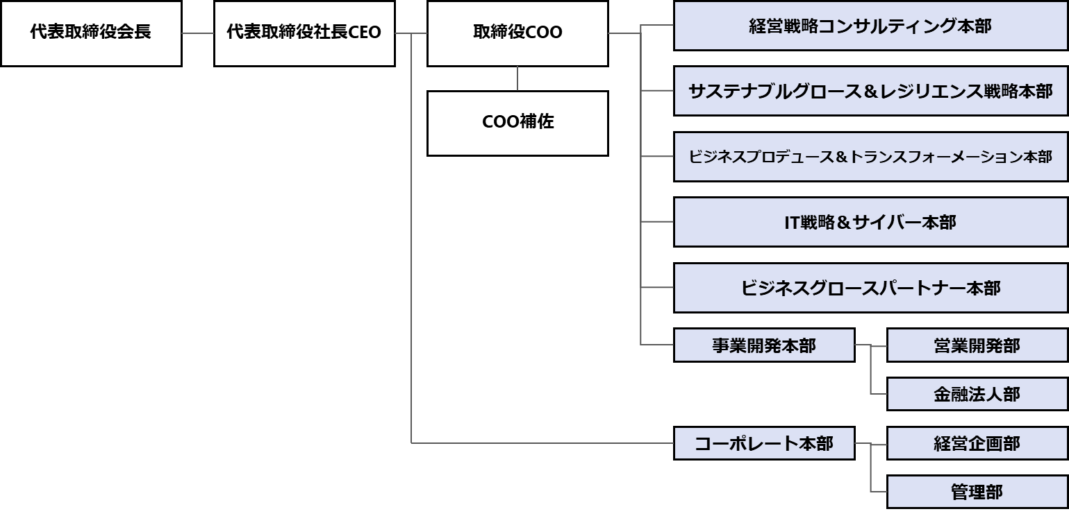 ビジネスプロデュース&トランスフォーメーション本部を「ビジネスプロデュース&トランスフォーメーション本部」と「ビジネスグロースパートナー本部」に新設分割