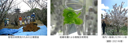 本プロジェクトのもと、住友林業は社内研究施設である筑波研究所で御室桜の生態解明と科学的知見に基づく管理技術の研究を実施。研究の末、2010年に御室桜の組織培養増殖に成功しました。2012年に境内へ植栽したクローン桜は、2014年にはじめて開花し、以降美しい花を咲かせています。