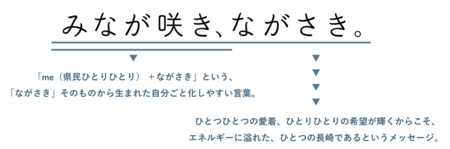・「me(県民ひとりひとり)+ながさき」という、「ながさき」そのものから生まれた言葉であり、すべての長崎県民を主役に。