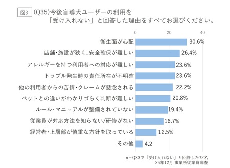 ・「衛生的にほかの動物が入ることは禁止しているのに、盲導犬だけ入っていいものか心配」(医療業)