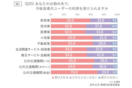今回の事業所で働く従業員への調査とは別に、協会では、2025年8月に一般市民1,200人を対象にアンケート調査を実施し、盲導犬と一緒に施設を利用することへのイメージ把握を行いました。