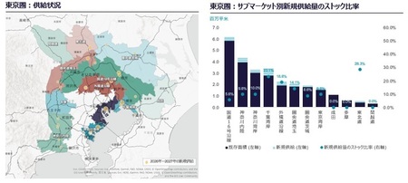 今後、サプライチェーンの寸断リスクを痛感した荷主(製造業・小売業)は、従来の「Just-in-Time(必要なものを必要なだけ)」から「Just-in-Case(万が一のための安全在庫確保)」へと中長期的に在庫戦略を変化させる可能性がある。手元に保有すべきバッファー在庫(安全在庫)の基準が引き上げられることで、追加の倉庫床面積(拡張需要)が必要となる可能性もある。一方で首都圏の新規供給量は前年比マイナス38%と大幅に減少している。今後12か月に予定される新規供給も過去5年平均比で6.6%減少する見込みとなっている。