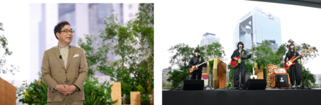 積水ハウスでは、新入社員を心から歓迎する場として、2023年度から入社式を「新入社員歓迎会」として開催しています。2026年度も、昨年に続き当社がジョイントベンチャーの一員として参画したグラングリーン大阪にて屋外形式で実施しました。