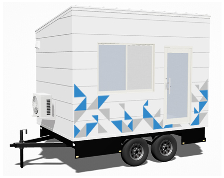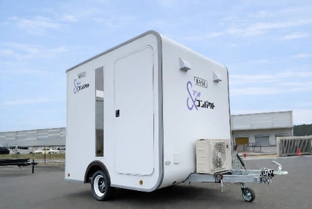 ナンバープレートが付いた自動車ですので、建物が建てられない場所でも自由に設置できます。また、太陽光パネルを搭載したオフグリッドシステム、カーボンフリーの外装材を使用するなど、地球環境に配慮した製品となっています。