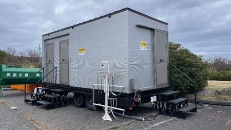 個室シャワー室/バリアフリーシャワー室を搭載した、シャワー専用トレーラーハウスです。被災地はもとより、工事現場や屋外イベント会場に設置するだけで、簡単にシャワー室が実現します。