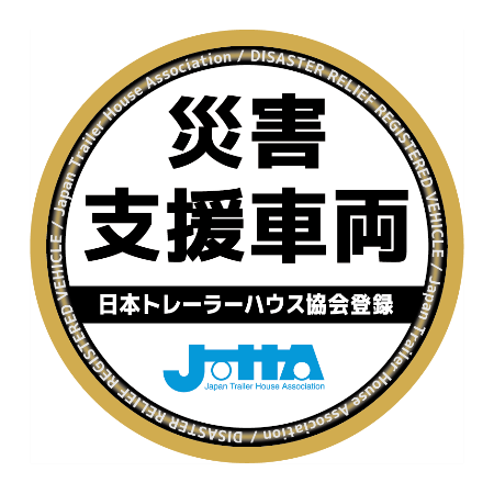また、一般社団法人日本トレーラーハウス協会が発行するシールも貼付しており、協会へ依頼される被災地支援の要望に対しても、迅速に対応してまいります。