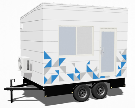 ナンバープレートが付いた自動車ですので、建物が建てられない場所でも自由に設置できます。また、太陽光パネルを搭載したオフグリッドシステム、カーボンフリーの外装材を使用するなど、地球環境に配慮した製品となっています。