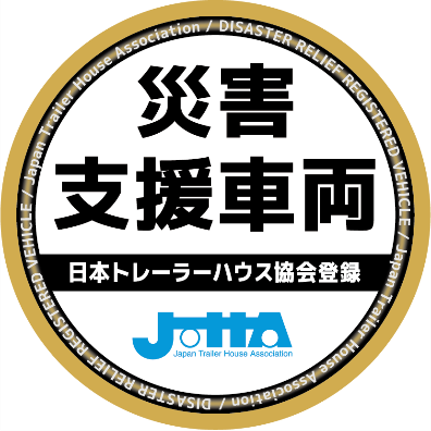 また、一般社団法人日本トレーラーハウス協会が発行するシールも貼付しており、協会へ依頼される被災地支援の要望に対しても、迅速に対応してまいります。