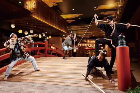 鼠小僧と捕方が繰り広げる、笑いとスリルあふれるドタバタ劇です。出演者と一緒に踊り、声を出しながら、会場が一体となる臨場感をお楽しみいただけます。