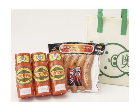 【母の日】明方ハム保冷バッグセット(ミョウガタハム3本、醤油フランク5本入1袋)