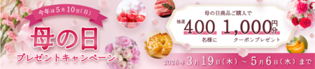 また、「JAタウン」では、「母の日」対象商品をご購入した方の中から抽選で400名様に、後日JAタウンのお買い物で使用できる1,000円分のクーポンが当たる「母の日プレゼントキャンペーン」を実施しています。