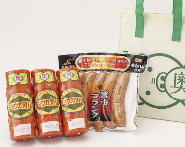 【母の日】明方ハム保冷バッグセット(ミョウガタハム3本、醤油フランク5本入1袋)