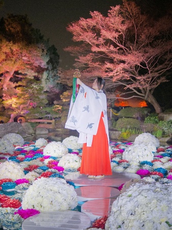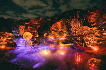 今回新たに誕生した「浮花-Fuka-」は、日本庭園の静謐な景観の中に幻想的な花の世界を創出し、来場者に新たな写真体験を提供するコンテンツです。