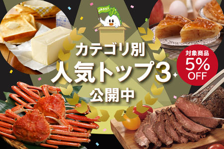 2.内容:令和7年4月~令和8年3月の売上個数をもとにランキング決定したカテゴリ別人気商品TOP3が全品5%OFF