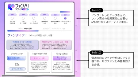 今回の「ファンAIリサーチ ブランド」では、電通が長年培ってきたファンマーケティングの知見にAIを掛け合わせることで、生活者がどのような体験を通じて企業や商品ブランドのファンになっていくのかを、よりスピーディに可視化することが可能となりました。